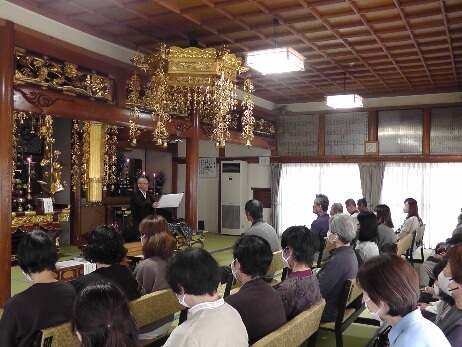法要の後、お説教を聞きました。下田隆宏師が、法然上人の生い立ちから始まり、我が宗の教えをわかりやすくお話しくださいました。